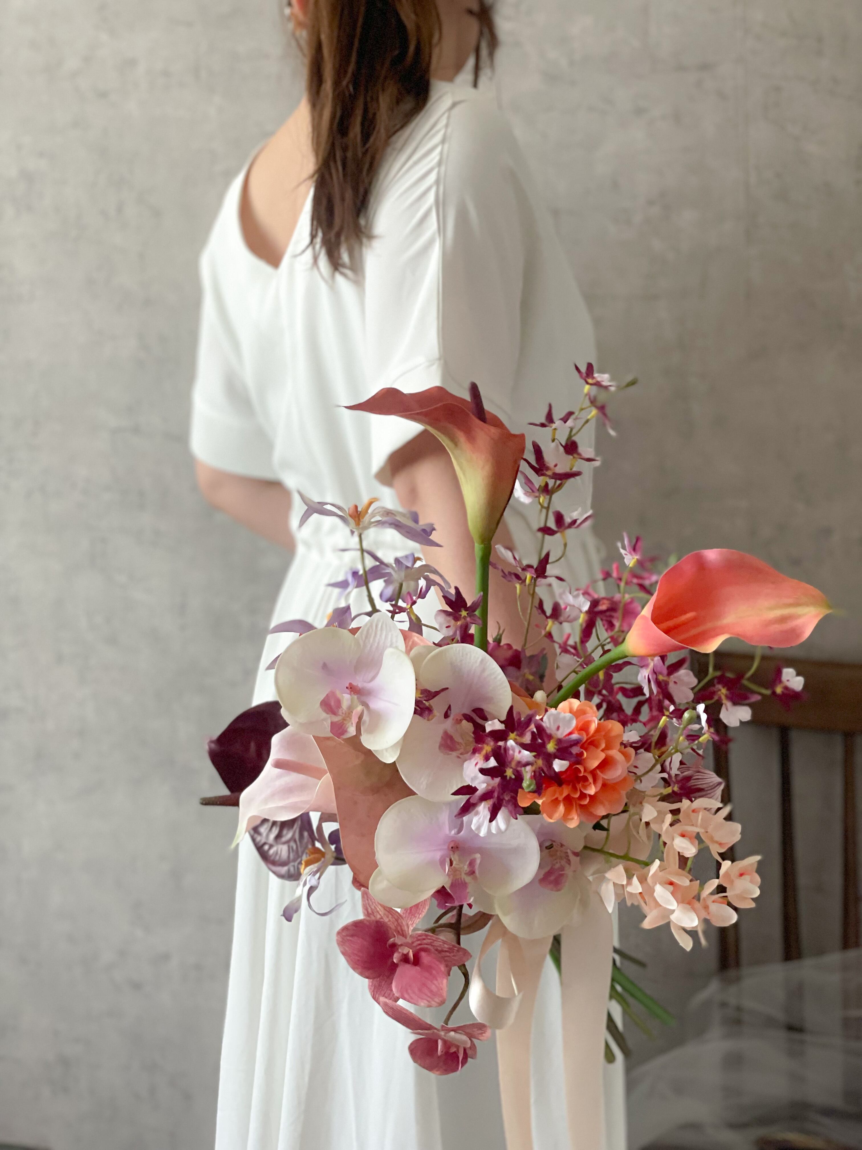 季節や天候を問わず、ご紹介頂けるアーティフィシャルフラワーブーケは取り扱いやすく